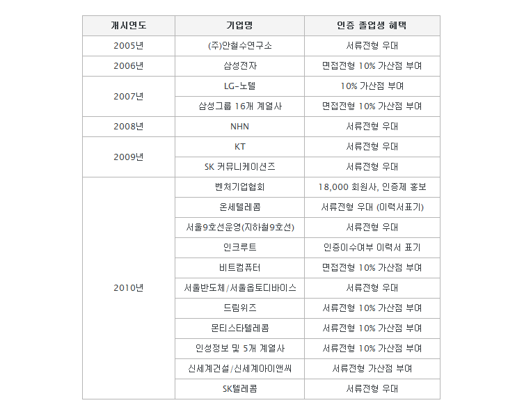 2010년 현재 국내 공학교육인증혜택 입니다.